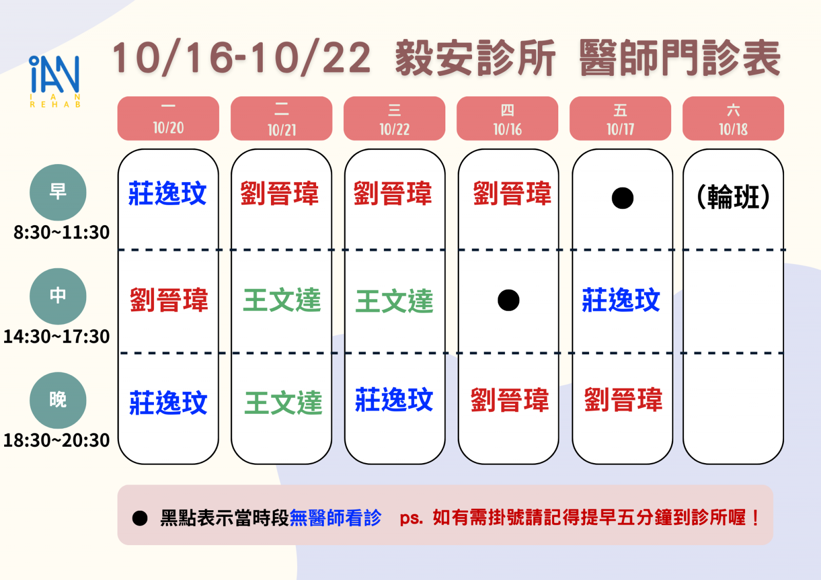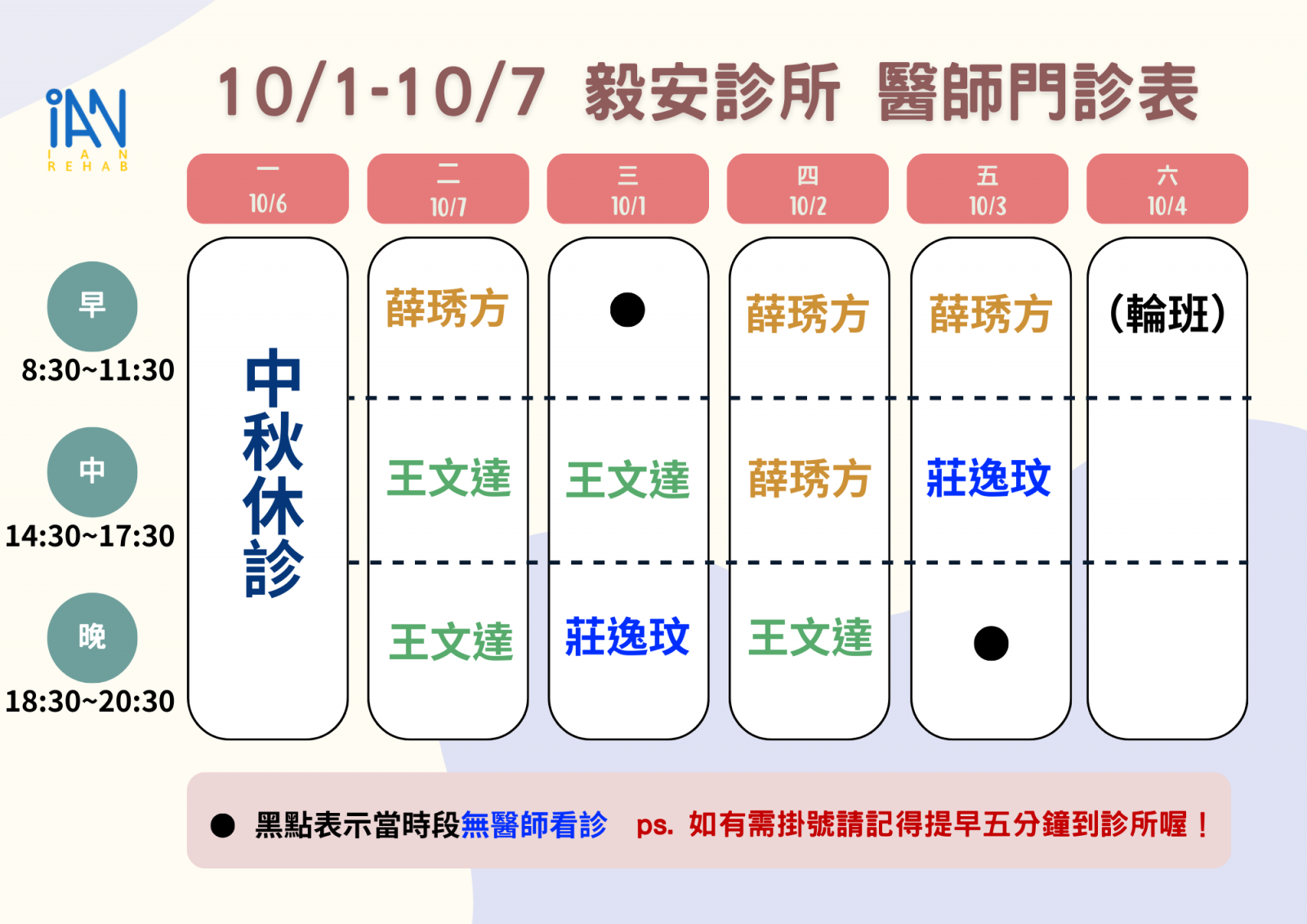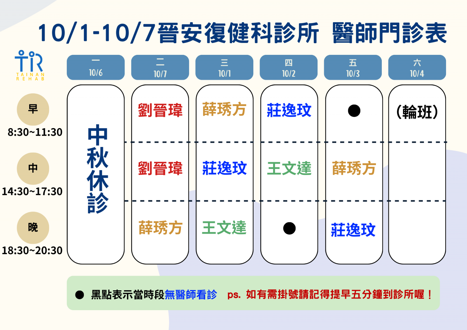因應疫情關係,以下諸多時段無醫師看診,請避開此時段