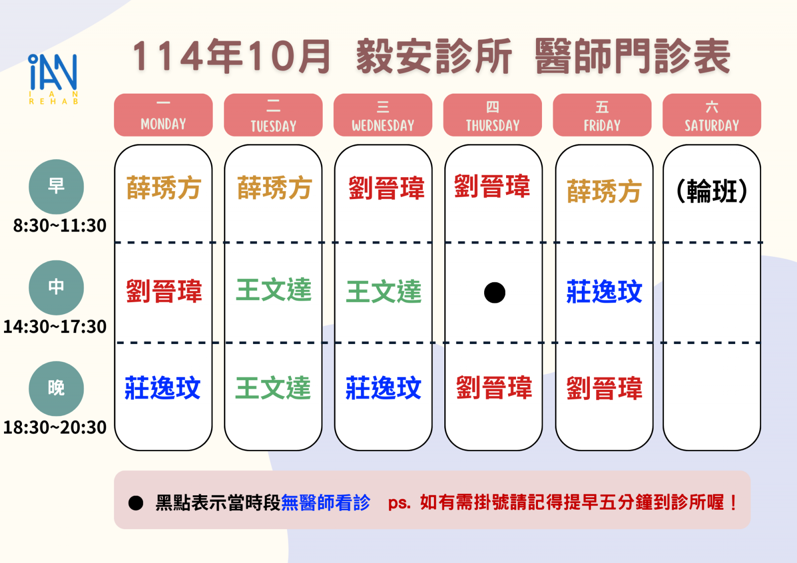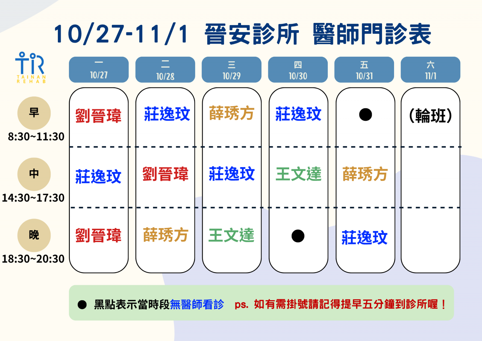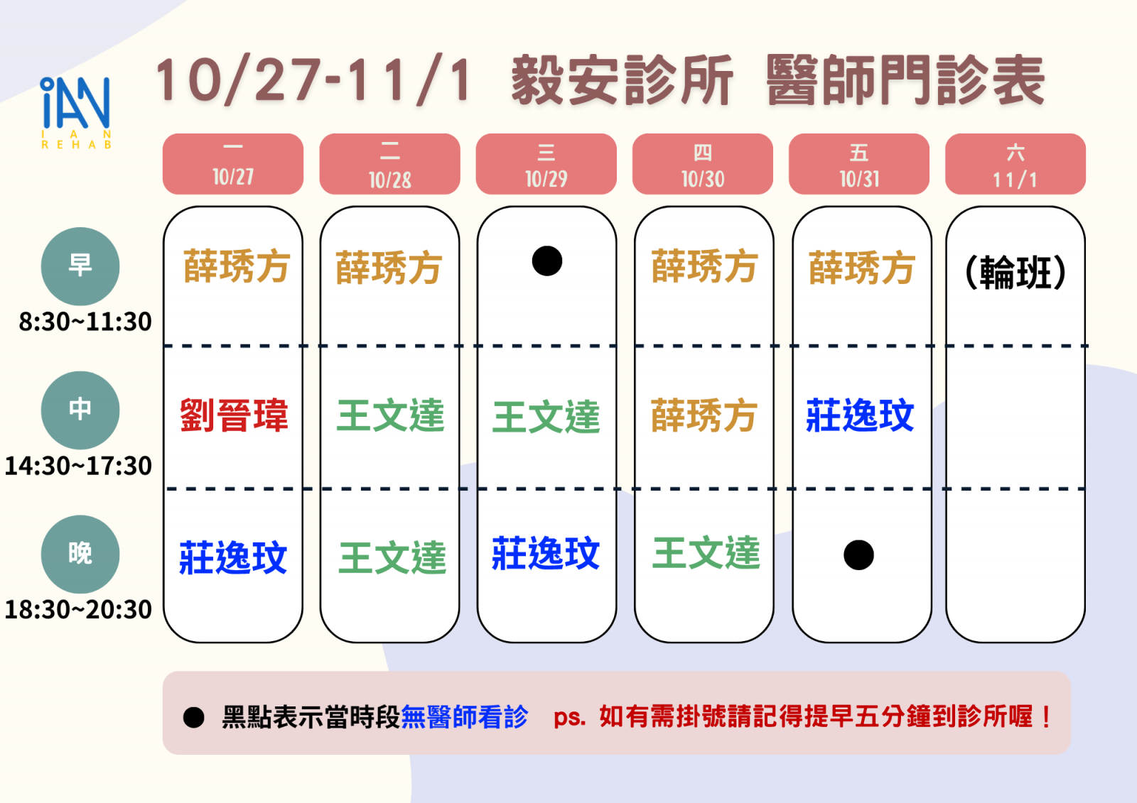 因應疫情關係,以下諸多時段無醫師看診,請避開此時段